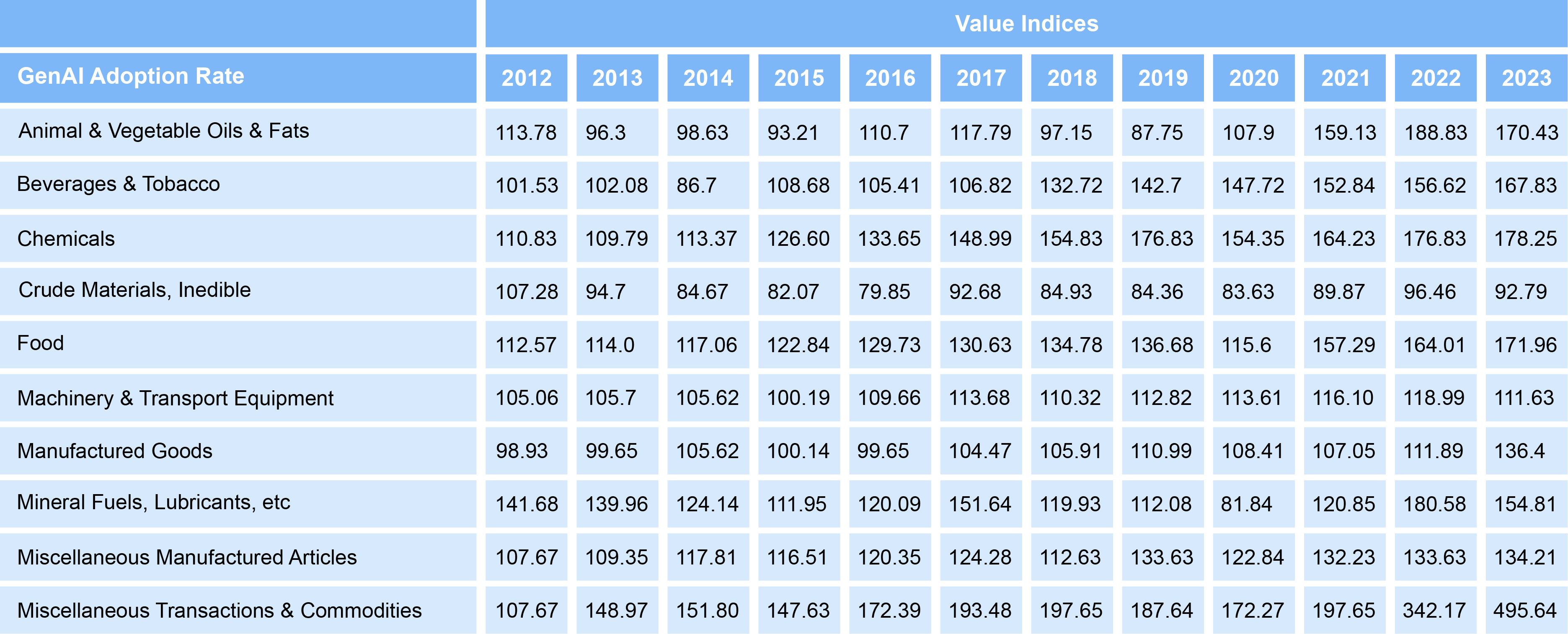 narrative of recovery, growth, and global importance. These indices track changes in export prices over time, with 2010 serving as the baseline (2010=100). An index above 100 reflects a rise in average export prices,